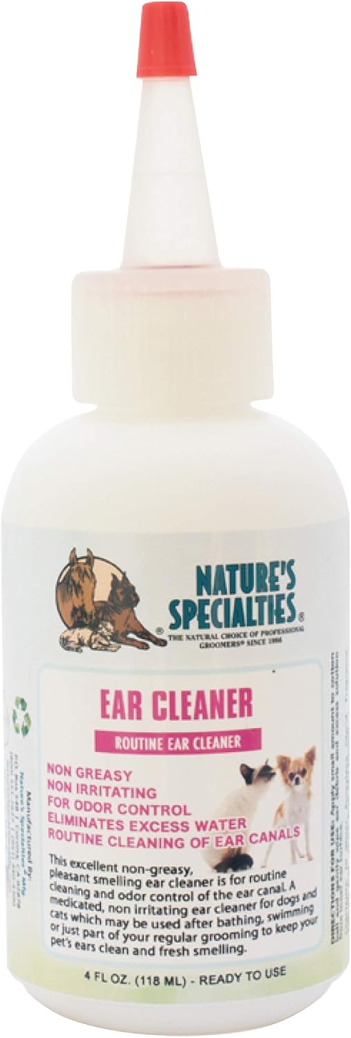 The Nature’s Specialities Ear Cleaner, priced at $11.99 for 4 oz, is another medicated solution containing salicylic acid that will help in loosening debris in dog ears.
